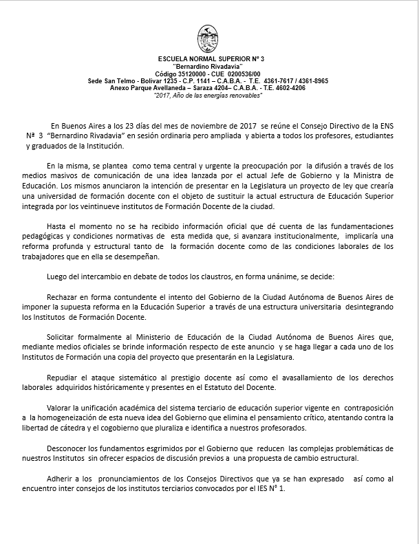 ESCUELA NORMAL SUPERIOR No 3 “Bernardino Rivadavia”